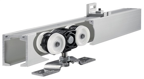 nach DIN EN 1527 · hochwertiges Schiebesystem für Holz-, Kunststoff- und Metallflügel bis 140 kg Türflügelgewicht · für Glasflügel Klemmplatte erhältlich · für alle ein-, mehrflügeligen und synchronen Schiebetüren · besonders für Wohn- und Bürobereich geeignet durch 2 Präzisionskugellager pro Rollenwagen · Laufbahngestaltung · Gummilagerung für Türaufhängung und große Laufrollen · geringster Kraftaufwand beim Öffnen der Schiebetür · hohe Belastbarkeit · Bauhöhe 40 mm · innenliegende, abgedichtete Kugellager · optimale Lastverteilung mittels Dreifachpendelaufhängung · einfache, direkte Deckenmontage oder Montage über Winkel an Decke und Wand · Abstand des Flügels zur Wand einstellbar