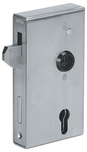 nicht rostender Stahl, geschliffen · Korn 240 · mit verzinktem Schloss (142SNIG) · Edelstahlstulp, geschliffen · vorgerichtet für Profilzylinder oder BB (mit Nachrüstsatz) · mit Aushebesicherung · Dornmaß 60 mm · Entfernung 72 mm · Vierkant 8 mm · 1-tourig · Nuss 8 mm · Zubehör: · 2 Drückerrosetten 18 mm · 4 Schrauben, Edelstahl rostfrei · 1 Sicherungsstift, Edelstahl rostfrei · Weitere technische Eigenschaften Maß B: 94mm • Maß C: 172mm • Vierkant: 8mm • Maß A: 30mm