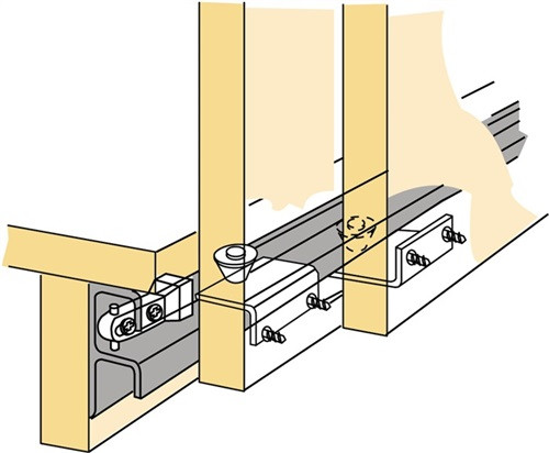 für innenliegende Türen · Führungsrollen aus Kunststoff mit Rollringen für geräuscharmen Lauf · der große Winkel ist verstellbar und damit für unterschiedliche Türstärken einsetzbar · untere Türführung · Weitere technische Eigenschaften Anzahl Laufbahnen: 2