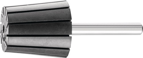 aus Gummi · konische Form · die Schlitze erleichtern die Ausdehnung des Körpers beim Schleifen, wodurch das Band gespannt wird und sie erhöhen die Elastizität · die Schleifbänder lassen sich unter leichter Rechtsdrehung auf- und abziehen · das Band läßt sich leichter wechseln, wenn der Schleifbandkörper eingespannt ist · Schaft-Ø 6 mm · Weitere technische Eigenschaften größter Körper-Ø: 29mm