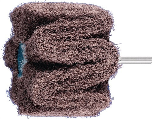 Korund A · Anordnung des Vliesmaterials in Wellenform um einen Kern gewickelt · durch diese Wellenform ist ansatzloses Strichmattieren von Flächen möglich · Schaft-Ø 6 mm · Weitere technische Eigenschaften max. Drehzahl: 6000min-¹