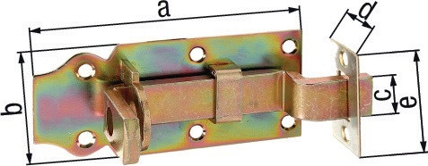mit flachem Griff mit versenkten Schraublöchern · Material: Stahl, Oberfläche: galvanisch gelb verzinkt · Ausführung: gekröpft , mit befestigter Schlaufe · Weitere technische Eigenschaften Oberfläche: galvanisch gelb verzinkt • Maß c: 16mm • Maß d: 22mm • Form: gekröpft • Maß e: 40mm • Maß a: 100mm • Maß b: 44mm