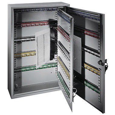 Der Schlüsselschrank S ist für die sichere Aufbewahrung von sehr vielen Schlüsseln geeignet. Durch die fortlaufende Nummerierung der Haken ist es möglich, selbst bei großen Schlüsselmengen den Überblick zu behalten. · Anzahl der Schlüssel: 42 Schlüssel · Schloss vorhanden: Ja · Maße: 27 x 35 x 8 cm (B x H x T) · Masse (Gewicht): 3,5 kg · Ausführung der Lieferzusammenstellung: inkl. 2 Schlüssel · Werkstoff: Stahlblech · Farbe: lichtgrau