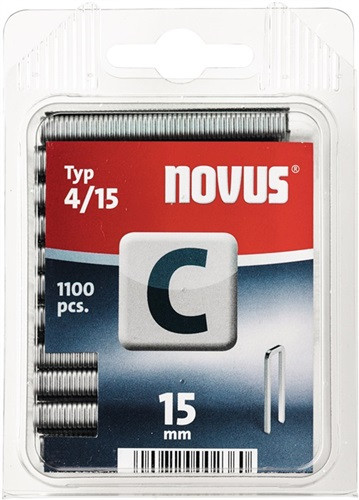 Schmalrückenklammer 4 B.6 mm Schenkel-L.15 mm Draht-B.1,1 mm 1100 St./Krt.NOVUS