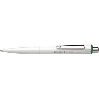 Schneider Kugelschreiber K 3 Biosafe 0,6mm schwarz dokumentenecht Farbe des Schaftes: weiß · Material der Spitze: Edelstahl · Verwendung für Produkt: Express 775, 735, Slider 755, Gelmine Gelion 39 · Typbezeichnung der Mine: G2 Großraummine · Typbezeichnung der Mine (in Anlehnung an ISO): ISO 12757-2 G2 · Strichstärke: 0,6 mm · Schreibfarbe: grün · Mine auswechselbar: Ja · Ausführung der Vorschubmechanik: Druckmechanik · Material des Clips: Stahl · Farbe des Schaftes: weiß · Farbe des Clips: silber · dokumentenecht: Ja · Clip vorhanden: Ja · Material des Schaftes: Kunststoff