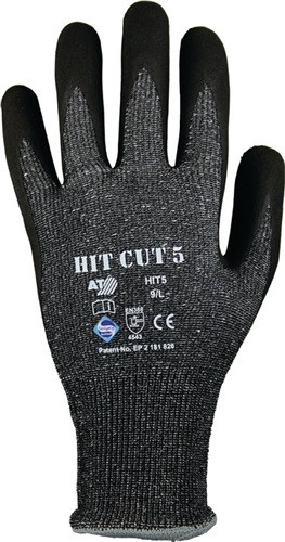 nach EN388 · Kat.II · Material: HDPE grau meliert · Innenhand und Fingerkuppen mit schwarzer Nitril-Schaum-Beschichtung · Schnittschutzlevel 5 · angenehmer Tragekomfort · perfekte Passform und Griffsicherheit · hohe Abriebfestigkeit · Anwendung: für präzise Tätigkeiten im Hightech-Bereich, Glasindustrie, Elektroindustrie, Reinraum- und Pharmaindustrie, Automobilbau, Metallverarbeitung, Montage · Weitere technische Eigenschaften Kategorie: II • Abriebfestigkeit: 4 • Weiterreißfestigkeit: 3 • Stichfestigkeit: 4 • EN-ISO-Schnittfestigkeit (Newton): C • Ausführung: Strickbund, Innenhand beschichtet • Norm: EN 388