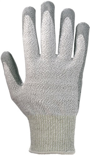 nach EN 388 · Kat. II · Schnittschutzlevel D · Material: HPPE-Faser, Glas, Polyamid · sehr gute Feinfühligkeit ermöglicht das Handling von feinsten Teilen und Werkstücken · sicherer Griff bei leicht öligen Teilen wird durch Polyurethanbeschichtung sichergestellt · feuchtigkeitsabweisend · ergonomischer Tragekomfort · waschbar · Anwendung: Glasverarbeitung, Metallver- und bearbeitung, Automobilindustrie, Feinmechanik, Druckereien, Arbeiten mit scharfkantigen Werkstücken · Weitere technische Eigenschaften Kategorie: II • Abriebfestigkeit: 4 • Weiterreißfestigkeit: 4 • Stichfestigkeit: 2 • EN-ISO-Schnittfestigkeit (Newton): D • Ausführung: Strickbund, Innenhand beschichtet • Stärke ca.: 1,10mm • Norm: EN 388