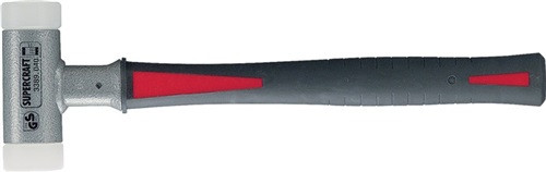 mit ergonomisch geformtem, rutsch- u. bruchsicherem, griffigem 3-Komponentenstiel (3-Komponentenstiel bestehend aus Fiberglaskern, Polypropylenschicht und rutschsicherer Elastomerschicht) · Schlagköpfe, beidseitig aus Nylon, weiß, hart · austauschbar · kein Absplittern, geräuscharm · Anwendungsbereiche: Montage-/ Reparaturarbeiten im Kfz-Bereich, Fügen von Werkstücken, Positionieren von Werkstücken im Schraubstock, Karosseriebau, Reparatur-/ Instandhaltungsarbeiten, Richtarbeiten, Gehäusemontage, Montage scharfkantiger Werkstücke, Blechbearbeitung · Weitere technische Eigenschaften Einsätze: Nylon weiß • Kopf-Ø: 50mm • Schlag: hart • Stiel: 3-Komponenten
