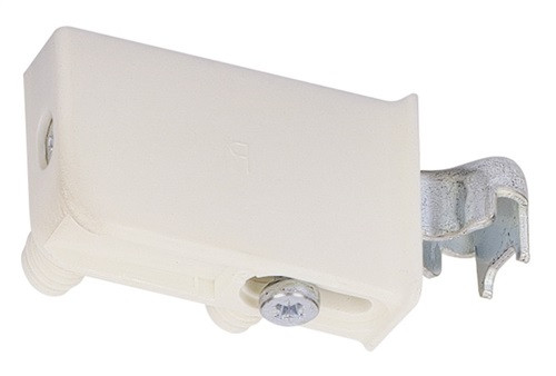 für Leisten und Hakenaufhängung · Nennlast = Nutzlast 350 N / Stück · Verstellmöglichkeiten · Höhe: ± 7 mm, Tiefe: max. 15 mm, seitliche Verschiebung ± 3 mm bei Hakenaufhängung · die Stellschrauben sind gegen unbeabsichtigtes Herausdrehen gesichert · Aushebehöhe: 7,5 mm · Haken Stahl / Gehäuse Kunststoff weiß · Weitere technische Eigenschaften Oberfläche: weiß