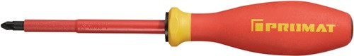 mit ergonomischem Mehrkomponentengriff mit Abrollschutz · gefertigt gem. IEC 60900 · stückgeprüft bei 10000 Volt im Wasserbad · Klinge aus hochlegiertem Spezialstahl · Spitze phosphatiert · Klinge isoliert · für Schrauben mit Kreuzschlitz (PZD)