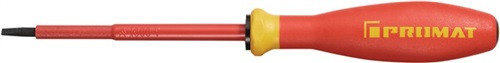 mit ergonomischem Mehrkomponentengriff mit Abrollschutz · gefertigt gem. IEC 60900 · stückgeprüft bei 10000 Volt im Wasserbad · Klinge aus hochvergütetem Spezialstahl · Schneide phosphatiert · Klinge isoliert für Schlitzschrauben
