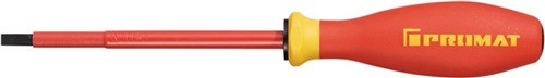 mit ergonomischem Mehrkomponentengriff mit Abrollschutz · gefertigt gem. IEC 60900 · stückgeprüft bei 10000 Volt im Wasserbad · Klinge aus hochvergütetem Spezialstahl · Schneide phosphatiert · Klinge isoliert für Schlitzschrauben