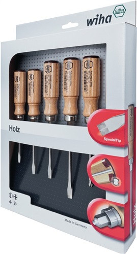 mit Holzheften · Klingen aus Chrom-Vanadium-Molybdän-Stahl · glanzvernickelt · ab Gr. 5,5 durchgehende Klinge und 6kant-Ansatz für Schraubenschlüssel · mit Lederkappe