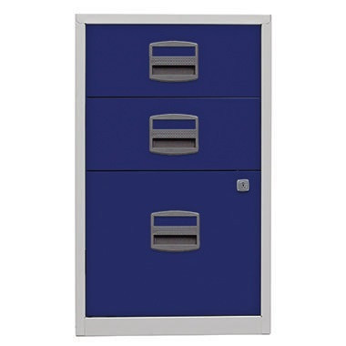 Büroschubladenschrank PFA3. Ideal für Home Office und Bereiche mit geringer Nutzung. 75 % Auszug der Schübe. Großes Etikettenfenster. · Garantie gewährt: Ja · Garantiedauer: 2 Jahre · Maße: 41,3 x 67,2 x 40 cm (B x H x T) · Material des Griffes: Kunststoff · Schließung vorhanden: Ja · Werkstoff: Stahl · Farbe des Griffes: schwarz · Tragfähigkeit der Schublade: 15 kg · Anzahl der Hängeregistraturen: 1 Hängeregistratur · Form des Griffes: Griffmulde · Anzahl der Bahnen: 1-bahnig · Farbe des Korpus: lichtgrau · Anzahl der Schubfächer: 2 Schubfächer · Art der Schubladenführung: kugelgelagert · Art des Auszuges: Teilauszug · Auszugsperre vorhanden: Nein · Farbe der Front: oxfordblau