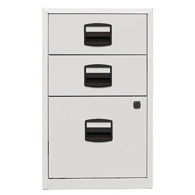 Büroschubladenschrank PFA3. Ideal für Home Office und Bereiche mit geringer Nutzung. 75 % Auszug der Schübe. Großes Etikettenfenster. · Farbe des Griffes: schwarz · Tragfähigkeit der Schublade: 15 kg · Schließung vorhanden: Ja · Material des Griffes: Kunststoff · Maße: 41,3 x 67,2 x 40 cm (B x H x T) · Garantiedauer: 2 Jahre · Garantie gewährt: Ja · Werkstoff: Stahl · Anzahl der Bahnen: 1-bahnig · Auszugsperre vorhanden: Nein · Art des Auszuges: Teilauszug · Art der Schubladenführung: kugelgelagert · Anzahl der Schubfächer: 2 Schubfächer · Anzahl der Hängeregistraturen: 1 Hängeregistratur · Form des Griffes: Griffmulde · Farbe: lichtgrau