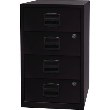 Büroschubladenschrank. Ideal für Home Office und Bereiche mit geringer Nutzung. 75 % Auszug der Schübe. Großes Etikettenfenster. · Farbe: schwarz · Werkstoff: Stahl · Schließung vorhanden: Ja · Rollen vorhanden: Nein · Material des Griffes: Kunststoff · Maße: 41,3 x 67,2 x 40 cm (B x H x T) · Garantiedauer: 2 Jahre · Form des Griffes: Griffmulde · Farbe des Griffes: schwarz · Auszugsperre vorhanden: Ja · Art des Auszuges: Teilauszug · Art der Schubladenführung: kugelgelagert · Anzahl der Schubfächer: 4 Schubfächer · Garantie gewährt: Ja