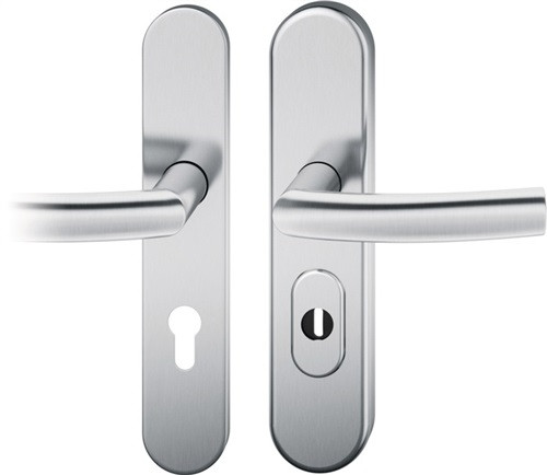 Langschild-Garnitur · für Außentüren · geprüft nach DIN 18257 · außen gekröpfter runder Flachknopf · innen Türgriff fest/drehbar gelagert · Drückerausführung FSB 1107 · verdeckte, durchgehende Befestigung · Lochung PZ, mit Zylinderabdeckung · Entfernung 72 mm / Vierkant 8 mm oder Entfernung 92 mm / Vierkant 10 mm · Türstärke 67-69 mm · DIN links / rechts verwendbar · Widerstandsklasse ES 1 · Weitere technische Eigenschaften Breite: 54mm • Länge: 246mm • Abdeckung: mit Zylinderabdeckung • Schildstärke: 15 mm • Farb-Nr.: 6204