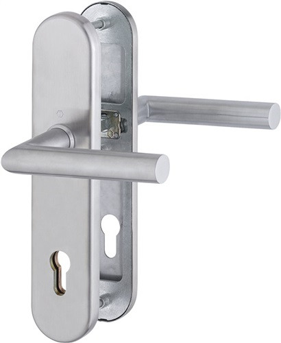 für Abschlusstüren · einbruchhemmend nach DIN 18257 · Stahl-Unterkonstruktion im Außen- und Innenschild · mit Rückholfeder-Paket · mit Schnellstift-Verbindung · hochfeste, verdeckte Verschraubung · Knopfschild-Randhöhe: 12 mm · Lochung PZ · DIN links und rechts verwendbar · einschließlich Befestigungsmaterial · Widerstandsklasse ES 1 · Weitere technische Eigenschaften Breite: 54mm • Länge: 250mm • Abdeckung: ohne Zylinderabdeckung • Schildstärke: 12 mm • Ergänzung: abgesetzter Vierkant • Farb-Nr.: F69