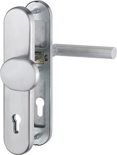 für Abschlusstüren · einbruchhemmend nach DIN 18257 · Stahl-Unterkonstruktion im Außen- und Innenschild · mit Rückholfeder-Paket · mit Schnellstift-Verbindung · hochfeste, verdeckte Verschraubung · Knopfschild-Randhöhe: 12 mm · Lochung PZ · DIN links und rechts verwendbar · einschließlich Befestigungsmaterial · Widerstandsklasse ES 1 · Weitere technische Eigenschaften Breite: 54mm • Länge: 250mm • Abdeckung: ohne Zylinderabdeckung • Schildstärke: 12 mm • Ergänzung: abgesetzter Vierkant • Farb-Nr.: F69