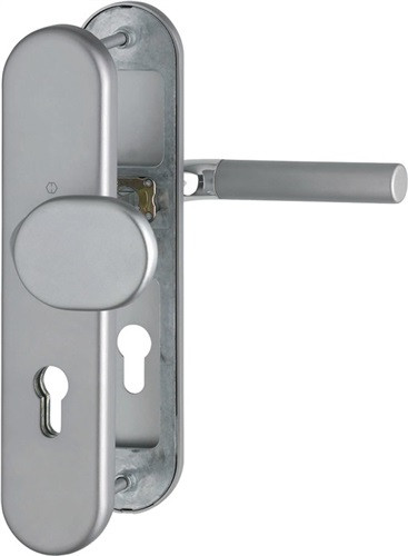 für Außen-/Wohnungsabschluss-Türen · geprüft nach DIN 18257 ES1 · Lagerung: außen gekröpfter Knopf fest, ummontierbar, innen Türgriff lose · Rückholfeder rechts/links verwendbar · wartungsfreies Gleitlager · Verbindung: HOPPE-Schnellstift mit HOPPE-FDW-Vollstift (Lochteil) · Zylinder-Abdeckung: gehärteter Stahl, für vorstehende Zylinderlänge 10-18 mm · Unterkonstruktion: außen Stahl, innen Zamak, Stütznocken · Befestigung: verdeckt, durchgehend, Gewindeschrauben M6 · Widerstandsklasse ES 1 · Vierkant 8 mm · Weitere technische Eigenschaften Breite: 54mm • Länge: 250mm • Abdeckung: mit Zylinderabdeckung • Schildstärke: 15 mm • Farb-Nr.: F49/F9-2