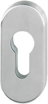Edelstahl-Schutz-Rosette für Profiltüren · Unterkonstruktion: Zamak: mit Stahleinlage · Befestigung: verdeckt, Kunststoffdübel (Schrauben für Kunststoff-Dübel, Blindsteckmuttern für Aluminiumtüren oder Spreiznocken für Kunststofftüren separat bestellen!) · Besonderheit: Schutzrosette mit Demontage-Scherung · PZ-Lochung · Breite 33 mm · Höhe 72 mm · Weitere technische Eigenschaften Lochung: PZ