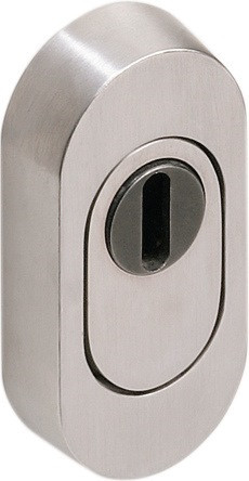mit Zylinderabdeckung Außenrosette, massiv, oval 72 x 37 mm , 14 mm hoch , gehärtet, mit integrierter Zylinderabdeckung mit Stützumfassung, in konischer Ausführung Innenrosette FS-Ausführung in Polyamid Stahlverbundbau, oval 72 x 30 mm, 10,5 mm hoch, verdeckte Verschraubung, zur Aufschraubmontage, Lieferung ohne Schrauben Lochungen für Profilzylinder (PZ), für Zylinderüberstände: 10,5 - 15 mm, für Türstärke 63,1-68 mm Die Schutz-Rosette entspricht den Vorgaben der DIN 18273 · Weitere technische Eigenschaften Norm: DIN 18273 • Lochung: PZ