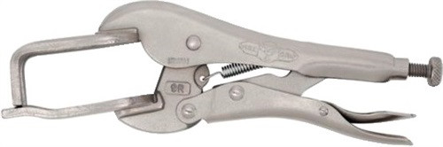 stark profilierte Spannbacken · Oberbacke um 90° gebogen · Zangenkörper aus hochlegiertem Stahl · vernickelt · mit Einstellschraube und Schnelllösehebel
