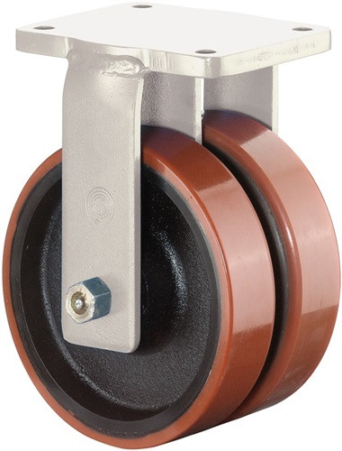 Doppel-Bockrolle · schwere Stahlschweißkonstruktion · verzinkt · Räder: mit Gussfelge, Bandage aus Gusspolyurethan 95 +/-3 Shore A, Farbe Bandage braun, Kugellager in der Radnabe · beständig gegen Benzin, Diesel, Öle sowie pflanzliche und tierische Fette · Weitere technische Eigenschaften Schraubloch-Ø: 12mm • Befestigungsart: mit Anschraubplatte • Bauhöhe: 264mm • Schraublochentfernung: 140 x 105mm • Arbeitstemperatur: -20 - 80°C • Plattenlänge: 175mm