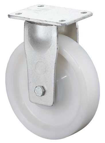 schwere Stahlschweißkonstruktion · verzinkt · Rad aus Kunststoff (naturfarben) · Kugellager · korrosionsunempfindlich · beständig gegen Benzin, Diesel, Öle sowie pflanzliche und tierische Fette · Weitere technische Eigenschaften Oberfläche Gehäuse: verzinkt-chromatiert • Schraubloch-Ø: 11mm • Schraublochentfernung: 105 x 80mm • Material Gehäuse: Stahlblech