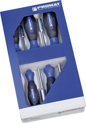mit Mehrkomponenten-Kraftheften · mit Abrollschutz · Klingen aus CV-Stahl · durchgehend gehärtet · mattverchromt · Besondere Produktvorteile: mit Innenbohrungen für überstehende Gewindeschäfte · Weitere technische Eigenschaften Inhalt: 5-teilig • Oberfläche: verchromt • Material: CV-Stahl