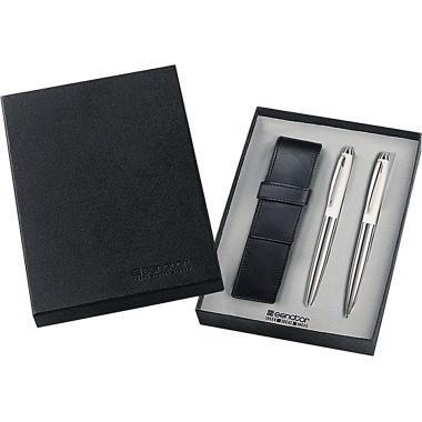 Das stilvolle Schreibset in geradlinigem Design als zeitloses Präsent. Der Drehkugelschreiber ist dokumentenecht. · Clip vorhanden: Ja · Schreibfarbe: blau · Mine auswechselbar: Ja · Material des Schaftes: Metall · Material des Clips: Metall · Farbe des Clips: silber · Typbezeichnung der Mine: Kugelschreiber: G2 Großraummine, Tintenroller: Safety-Roller · Bezeichnung der Schreibflüssigkeit: Tinte · Ausführung der Vorschubmechanik: Kappenmodell · Ausführung der Lieferzusammenstellung: inkl. 1 x Drehkugelschreiber M, 1 x Tintenroller 0,5 mm, Led · Ausführung der Griffzone: rund · Anzahl der Schreibgeräte: 2 Schreibgeräte · Farbe des Schaftes: weiß