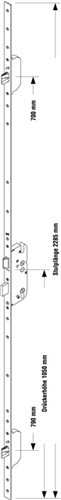 Mehrfachverriegelung für einbruchhemmende Türen nach WK 2 oder 3 geeignet (je nach Bauart des Elements). Massivriegel aus Zinkdruckguss mit gehärteter, durchsägesicherer Stahleinlage als zusätzliche obere und untere Verriegelung ( MR2 = 2 zusätzliche Riegel, MR4 = 4 zusätzliche Riegel). Schlosskasten allseitig geschlossen geprüft nach DIN 18251 Klasse 3/4. Durchgangsbohrungen für Rosetten mit Späneschutz. Falle umstellbar von DIN LS auf DIN RS. Schlossriegel 2-tourig (= 20 mm Riegelausschluss). Stulp silberfarbig verzinkt 2285 mm. · Weitere technische Eigenschaften Stulp: silber • Stulplänge: 2285mm • Ausführung: Standard