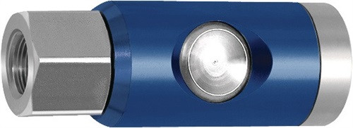 Druckknopf-Ausführung · hochwertige, robuste und langlebige, mit einer Hand bedienbare, vollautomatische Schnellverschlusskupplung in Sicherheitsausführung mit hohen Durchflusswerten · die Entlüftung erfolgt durch zweimaliges Drücken des Druckknopfes · beim ersten Drücken erfolgt die Entlüftung der Kupplung, dennoch bleibt der Stecker in der Kupplung gesichert · nach dem zweiten Drücken wird der Stecker gelöst · somit wird der berüchtigte "Peitschenhiebeffekt" verhindert und das Risiko der Verletzung des Bedienpersonals praktisch ausgeschlossen · die Sicherheitsversion entspricht dem ISO-Standard DIN EN ISO 4414 · Weitere technische Eigenschaften Durchfluss: 1800 (bei 6 bar, montiertem Stecker und Δp = 1 bar)l/min