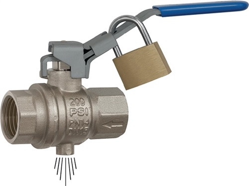 zweiteilig · mit Entlüftungsbohrung · speziell konzipiert für Druckluftanwendungen · der Kugelhahn sperrt die Versorgungsleitung ab und entlüftet den Anwendungsbereich · abschließbarer Handhebel in geschlossener Stellung, dadurch hohe Manipulationssicherheit · Rp-Gewinde nach EN 10226 · Weitere technische Eigenschaften A: 117mm • Spindelabdichtung: PTFE • Kugeldichtung: PTFE • L: 64mm • B: 60mm