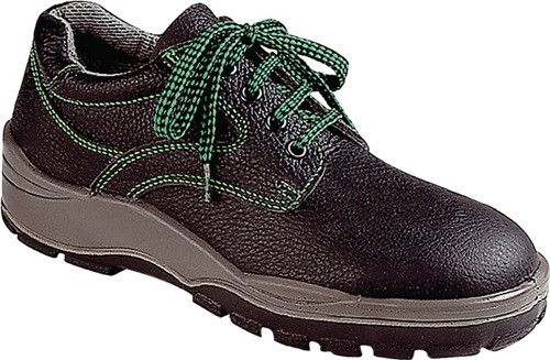 nach DIN EN ISO 20345:2011 · S3 SRA · Obermaterial: Schaft aus schwarz/grauem Rindnarbenleder, wasserabweisend · grüne Kontrastnähte · Schaftrand und Laschenpolster · Stahlkappe · Stahlzwischensohle · Innensohle durchgehend und ergonomisch geformt · rutschhemmende 2-Schichten-PUR-Laufsohle · antistatisch · öl- und säurebeständig · Weite 10 · Weitere technische Eigenschaften Zehenschutzkappe: Stahl • Kategorie: II • Zwischensohle: Stahl • Schutzklasse: S3 SRA • Norm: EN ISO 20345