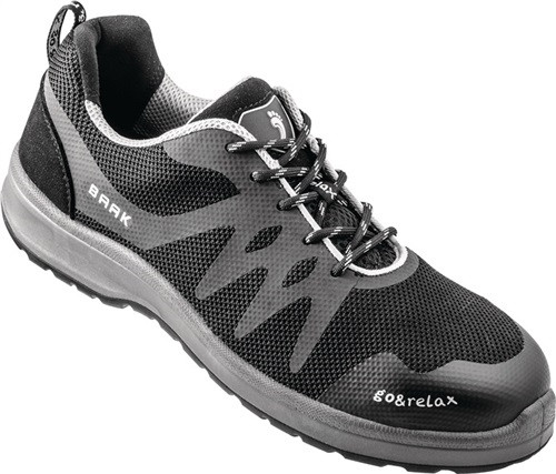 nach DIN EN ISO 20345 · S1 SRC ESD · Obermaterial: atmungsaktives Textilmaterial mit reflektierendem PU-Print · weiche Schaftpolsterung und klimaregulierendes Textilfutter · Baak® go&relax-System zum fußgerechten Abknicken, bestehend aus Baak-Flexkappe, Baak-Flexzone & Baak-H-Kopplungs-Element · breite Aluminium Flex-Schutzkappe mit Verlängerung an der Außenseite zur Unterstützung eines fußgerechten Abknickens für besonders gute Zehenfreiheit · weich dämpfende BAAK ESD-Softstep-Einlegesohle, atmungsaktiv mit sehr hoher Feuchtigkeitsaufnahme und -abgabe, antibakteriell, fungizid · PU-Zwischensohle mit hohem Energieaufnahmevermögen, PU-Laufsohle: sehr flexibel, rutschhemmend, nicht kreidend · zertifiziert nach DGUV 112-191 für den Einsatz bestimmter orthopädischer Einlagen · nur 410 g pro Stück (Gr. 42) · Weite 11 · Anwendung: Bereiche, in denen Einwirkung von Feuchtigkeit nicht zu erwarten ist: Handwerk, Automobilindustrie, Elektroindustrie, Druckindustrie, Energie- und Versorgungsindustrie, Verpackungsindustrie, Logistikbereich, Flugzeugbau, Behörden · Weitere technische Eigenschaften Zehenschutzkappe: Aluminium • Kategorie: II • Schutzklasse: S1 SRC ESD • Ausführung: DGUV 112-191 • Norm: EN ISO 20345
