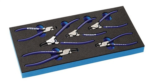 (1/3 Modul) mit Zangen für Sicherungsringe (Innen- und Außensicherungsringe) · gebogene Backen · Kopf poliert · DIN 5256 D/DIN 5254 B