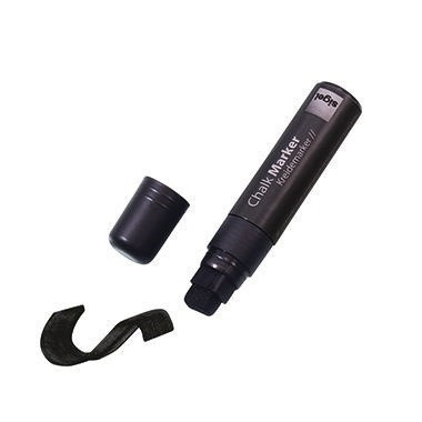 Kreidemarker für Glas und alle glatten Oberflächen, lässt sich rückstandsfrei feucht oder trocken abwischen. Durch die breite Spitze ist der Marker besonders variabel einsetzbar - von dünner Schrift bis hin zur dicken, dekorative Plakatschrift. · Material des Schaftes: polypropylen · wischfest: Nein · wasserfest: Nein · Strichstärke: Mai 15 mm · Spitze austauschbar: Nein · nachfüllbar: Nein · Kappe umsteckbar: Nein · Farbe des Schaftes: schwarz · Clip vorhanden: Ja · Bezeichnung der Schreibflüssigkeit: Flüssigkreide auf Wasserbasis · Ausführung der Spitze: Blockspitze · Schreibfarbe: schwarz