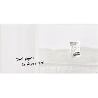 25 Jahre Herstellergarantie auf eine einwandfreie Beschreibbarkeit und Abwischbarkeit der Glasoberfläche (bei Verwendung des Sigel Glas-Magnetboard-Zubehörs). Die Rahmenlose Aufhängung lässt das Glas-Magnetboard frei vor der Wand schweben. Garantie auf die Glasoberfläche bei Verwendung von Sigel-Zubehör. Montage im Hoch- oder Querformat möglich. · Maße: 91 x 46 x 1,5 cm (B x H x T) · Normnummer: DIN EN 12150-1 · Zubehör für die Wandbefestigung: Befestigungsmaterial · Werkstoff: Tempered Glas · Tafel magnethaftend: Ja · Farbe: super-weiß · DIN-Norm vorhanden: Ja · Ausführung der Lieferzusammenstellung: inkl. starker SuperDym-Magnete · abwischbar: Ja · Ablageschale vorhanden: Nein · Tafel beschreibbar: Ja