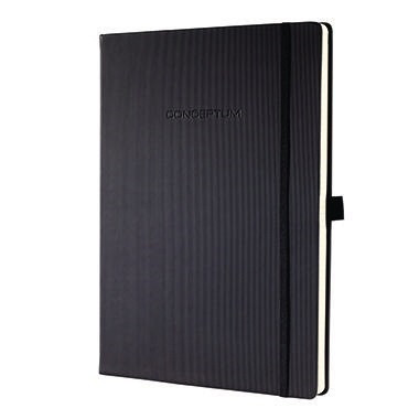 Dieses Notizbuch der CONCEPTUM® Reihe ist ein anpassungsfähiger Begleiter mit viel Charme. Das Design des Notizbuchs steht für Klarheit auf ganzer Linie und ist optisch auf das Wesentliche reduziert. Elegant, modern und mehrfach international designprämiert. In bester Verarbeitungsqualität und höchster Funktionalität bis ins Detail. Mit Inhaltsverzeichnis, Titelaufkleber, Rückenaufkleber und 20 perforierte Blätter zum Heraustrennen. · Typbezeichnung des Einbandes: Hardcover · Verwendung für Einstecktasche: Quickpoket, Dokumente, Karten · Material des Einbandes: Kunststoff · Höhe des Blattes: 291 mm · Papierformat: DIN A4 · PEFC: Nein · Verwendung als Fundhilfe: Lesezeichen · Seitenzahl vorhanden: Ja · Typbezeichnung des Motivs: Softwave · Maße: 21,3 x 29,5 cm (B x H) · Register vorhanden: Nein · Ausführung der Bindung: Fadenbindung · Grammatur: 80 g/m² · nachfüllbar: Nein · abgerundete Ecken vorhanden: Ja · Art des Verschlusses: Gummibandverschluss · Ausführung der Lieferzusammenstellung: inkl. Inhaltsverzeichnis, Stiftschlaufe, Titelaufkleber, Rüc · Ausführung der Lineatur: kariert · Breite des Blattes: 208 mm · Einstecktasche vorhanden: Ja · Farbe des Einbandes: schwarz · Farbe des Rückens: schwarz · Anzahl der Blätter: 97 Bl.