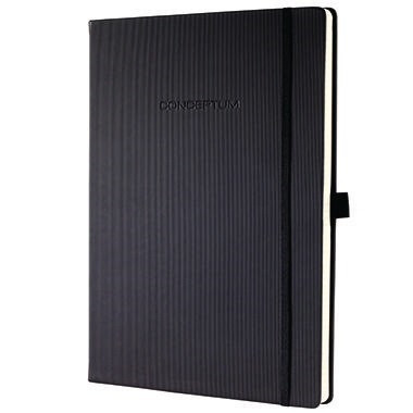 Mit diesem schwarzen Notizbuch aus der CONCEPTUM® Reihe sind Sie nicht nur im Büro gut gerüstet. Dieses Notizbuch bietet Ihnen Design pur für Ihre Notizen. Optisch auf das Wesentliche reduziert, steht es für Klarheit auf ganzer Linie. Der hochwertige Einband überzeugt durch die besondere Struktur und die angenehme Haptik. Mit Inhaltsverzeichnis und 20 perforierten Blätter zum Heraustrennen. · Typbezeichnung des Motivs: Softwave · Material des Einbandes: Kunststoff · Nordischer Schwan: Nein · Paper by Nature: Nein · Papierformat: DIN A4+ · PEFC: Nein · Register vorhanden: Nein · Verwendung als Fundhilfe: Lesezeichen · Typbezeichnung des Einbandes: Hardcover · Verwendung für Einstecktasche: Quickpocket, Dokumente, Karten · Maße: 22,5 x 31,5 cm (B x H) · Seitenzahl vorhanden: Ja · Anzahl der Blätter: 97 Bl. · nachfüllbar: Nein · abgerundete Ecken vorhanden: Ja · Höhe des Blattes: 311 mm · Art des Verschlusses: Gummibandverschluss · Ausführung der Bindung: Fadenbindung · Ausführung der Lieferzusammenstellung: inkl. Inhaltsverzeichnis, Stiftschlaufe, 20 perforierte Blät · Ausführung der Lineatur: kariert · Einstecktasche vorhanden: Ja · Farbe des Einbandes: schwarz · Farbe des Rückens: schwarz · Forest Stewardship Council (FSC): Nein · Grammatur: 80 g/m² · Breite des Blattes: 222 mm