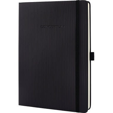 Mit diesem schwarzen Notizbuch aus der CONCEPTUM® Reihe sind Sie nicht nur im Büro gut gerüstet. Dieses Notizbuch bietet Ihnen Design pur für Ihre Notizen. Optisch auf das Wesentliche reduziert, steht es für Klarheit auf ganzer Linie. Der hochwertige Einband überzeugt durch die besondere Struktur und die angenehme Haptik. Mit Inhaltsverzeichnis und 20 perforierten Blätter zum Heraustrennen. · Papierformat: DIN A5 · Verwendung für Einstecktasche: Quickpocket, Dokumente, Karten · Nordischer Schwan: Nein · nachfüllbar: Nein · Paper by Nature: Nein · PEFC: Nein · Register vorhanden: Nein · Seitenzahl vorhanden: Ja · Typbezeichnung des Einbandes: Hardcover · Verwendung als Fundhilfe: Lesezeichen · Farbe des Einbandes: schwarz · Material des Einbandes: Kunststoff · Typbezeichnung des Motivs: Softwave · Anzahl der Blätter: 97 Bl. · Forest Stewardship Council (FSC): Nein · Maße: 18 x 24 cm (B x H) · abgerundete Ecken vorhanden: Ja · Art des Verschlusses: Gummibandverschluss · Ausführung der Bindung: Fadenbindung · Ausführung der Lieferzusammenstellung: inkl. Inhaltsverzeichnis, Stiftschlaufe, 20 perforierte Blät · Ausführung der Lineatur: kariert · Breite des Blattes: 222 mm · Einstecktasche vorhanden: Ja · Farbe des Rückens: schwarz · Grammatur: 80 g/m² · Höhe des Blattes: 311 mm