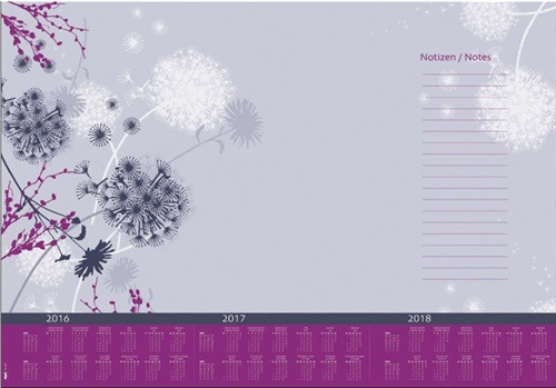Dank der stabilen Leimung an der Unterkante und partiell an der Oberkante wird zuverlässig ein Umknicken der Ecken verhindert. Viel Platz für Ihre persönlichen Notizen. Starke Optik und hoher Praxisnutzen in einem. · Kalender vorhanden: Ja · Folienauflage vorhanden: Ja · Werkstoff: Papier · Typbezeichnung des Motivs: Whisper · Stärke: 4 mm · recycelbar: Ja · Maße: 59,5 x 41 cm (B x H) · Grammatur: 80 g/m² · Anzahl der Blätter: 30 Bl. · Farbe: mehrfarbig · Breite: 595 mm · Ausführung der Kalenderaufteilung: 3 Jahre/1 Seite · Höhe: 410 mm