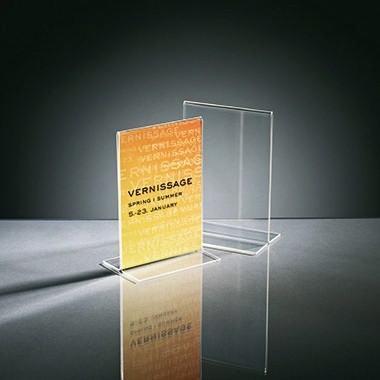 Informationen perfekt in Szene setzen - mit den Tischaufstellern von Sigel! Platzsparend und designstark lassen sich Aktionen, Hinweise und Angebote präsentieren. Die Sigel Tischaufsteller sind ein attraktiver Blickfang an Theken, Tischen, Ausstellungsräumen und Messen. Das Produkt hat eine sehr hohe Stabilität und Standfestigkeit. · Produktverwendung: präsentieren · Verwendung für Papierformat: DIN A6 · Standfuß vorhanden: Ja · Sonderform: T-Form · Farbe: glasklar · Beschriftungsschild auswechselbar: Ja · beidseitig verwendbar: Ja · Werkstoff: Acryl · Maße: 10,5 x 15 x 5,5 cm (B x H x T)