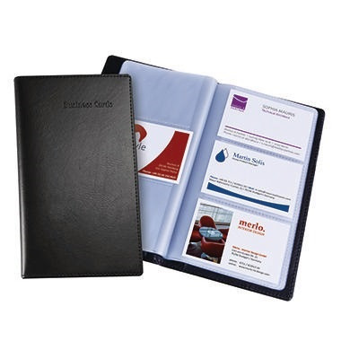 Edle Visitenkartenmappe in Lederoptik für die übersichtliche Aufbewahrung von Visiten- oder anderen Karten. · max. zulässige Abmessung der Karte wird unterstützt: 90 x 58 mm (B x H) · Maße: 11 x 19,2 x 1,2 cm (B x H x T) · Tiefe: 10 mm · max. Anzahl der Karten: 120 Karten · Material des Einbandes: Lederoptik · Farbe: schwarz · Breite: 110 mm · Anordnung der Lage (Zugriffsseite): links offen · Anzahl der Hüllen: 20 Hüllen · Werkstoff: Kunststoff · Höhe: 192 mm
