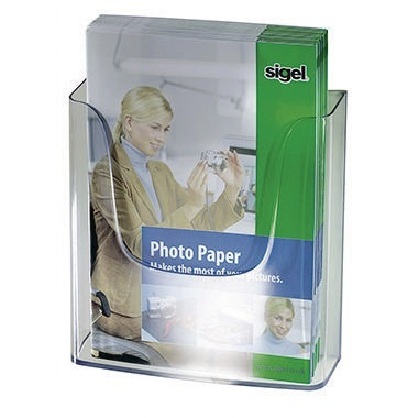 Nebeneinander zusammensteckbar, abgeschrägte Bodenfläche. Weiterhin ermöglicht die durchgängige Designlinie ein Nebeneinanderhängen mehrerer Wand-Prospekthalter. 25 Jahre Garantie auf die UV-Beständigkeit des Acryls. · Tiefe: 55 mm · Zubehör für die Wandbefestigung: Schrauben, Dübel · Werkstoff: Acryl · Verwendung für Papierformat: DIN A4 · max. Füllhöhe an Papier: 45 mm · Maße: 24 x 25 x 5,5 cm (B x H x T) · Farbe: glasklar · Beschreibung der Besonderheiten: nebeneinander zusammensteckbar, abgeschrägte Bodenfläche · Anzahl der Fächer: 1 Fach · Wandbefestigung möglich: Ja