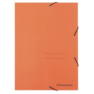 Soennecken Eckspanner DIN A4 Karton schwarz · Werkstoff: Karton · 3 Klappen (Jurisklappen) am Unterdeckel vorhanden: Ja · Art des Verschlusses: Gummizugverschluss · Farbe: orange · Grammatur: 390 g/m² · Maße: 23,4 x 31,8 x 3 cm (B x H x T) · max. Anzahl der Blätter: 250 Bl. (80 g/m²) · Verwendung für Papierformat: DIN A4