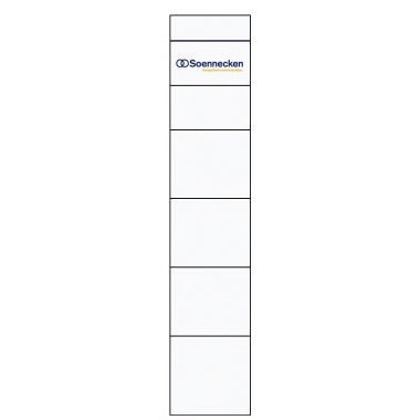 Einsteckrückenschilder passend für Soennecken Kunststoff-Ordner sowie andere bekannte Ordner-Marken mit Rückenschildtaschen. · Maße: 30 x 190 mm (B x H) · Packungsmenge: 10 St./Pack. · Werkstoff: Karton · selbstklebend: Nein · Grammatur: 250 g/m² · Aufdruck vorhanden: Ja · Format des Schildes: schmal/kurz · Griffloch vorhanden: Nein · Farbe: weiß · Verwendung für Druck- oder Schreibgerät: handschriftlich