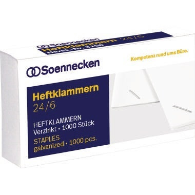 Nach DIN 7405. · Produktverwendung: Heftzange 124 · Typbezeichnung der Heftklammern: 24. Jun · rostfrei: Ja · Material der Klammern: Stahl, verzinkt · Ausführung des Inhalts (Packung): 1.000 St./Pack. · Heftleistung: 30 Bl. (80 g/m²)