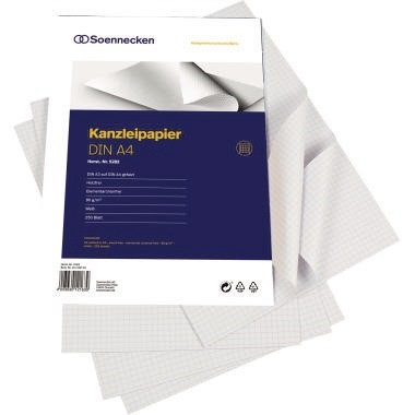 DIN A3 auf DIN A4 gefalzt. · Anzahl der Blätter je Packung: 250 Bl./Pack. · Ausführung der Lineatur: kariert · Ausführung des Papiertyps: holzfrei, elementar chlorfrei gebleicht · Farbe: weiß · Grammatur: 80 g/m² · Papierformat: DIN A3